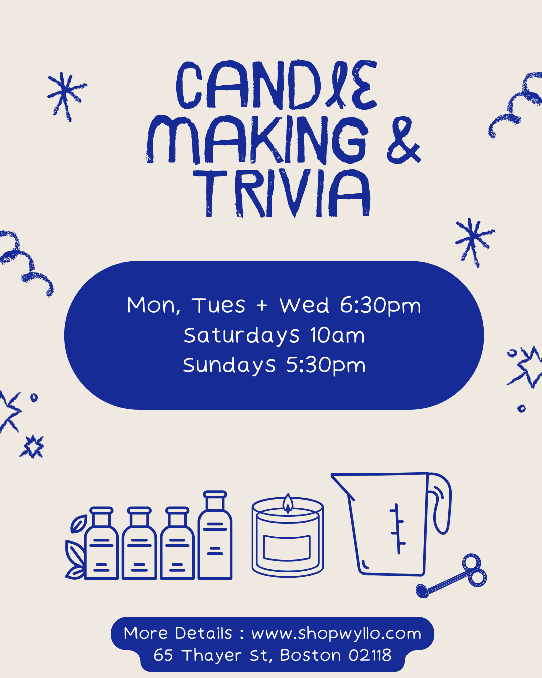 This workshop is perfect for beginners! In this class, you’ll create your own 100% soy wax candle and learn about fragrance blending and the the candle making process. You'll get to take your candle home at the end of the evening and while the candles are curing, we'll play candle trivia (with prizes!) and customize your candle jar with various labels and botanical decals to make a truly one of a kind product.