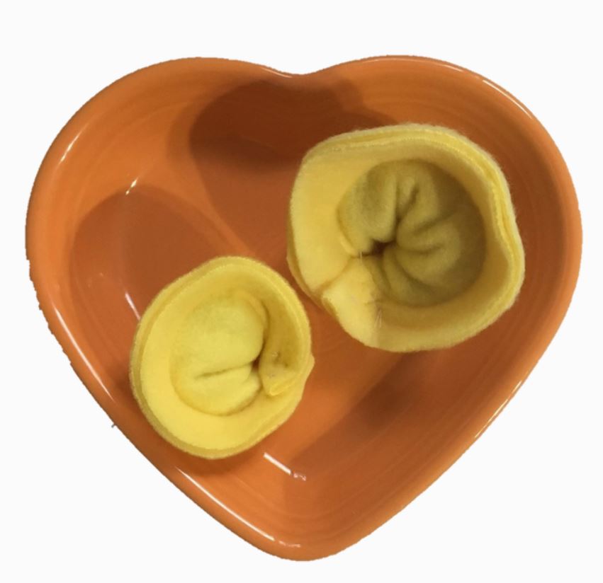 Who doesn't love a snack? Stuffed with 100% organic catnip, this is sure to be your cat's new favorite meal. The pillow shape is great for cats who love to rub, lay on, and munch their toys. This listing is for one large ravioli.