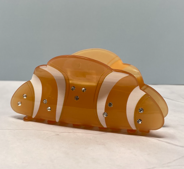 This vibrant croissant-shaped hair claw is crafted from eco-friendly cellulose acetate, a plant-based alternative to traditional plastic materials. Cozy up in your favorite coffee shop this fall with our buttery croissant hair clip.