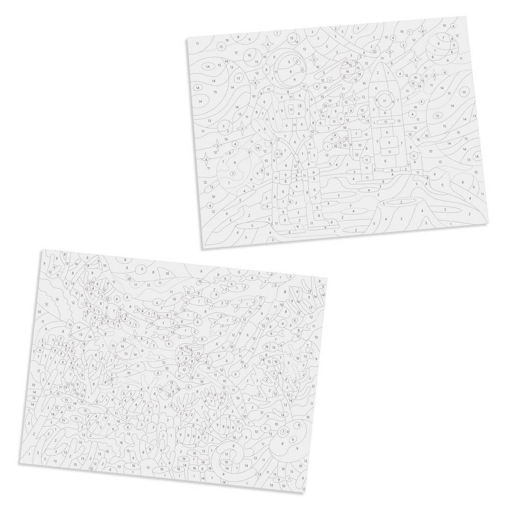 This Paint by Number Kit offers two paint kits: the Astronaut Paint Kit and the Maritime World Paint Kit. This will allow your children to color in wonderful, space-themed, or maritime-themed pictures. // What's in the Kids' kit? Each kit contains everything you need to get started & to finish your canvas.